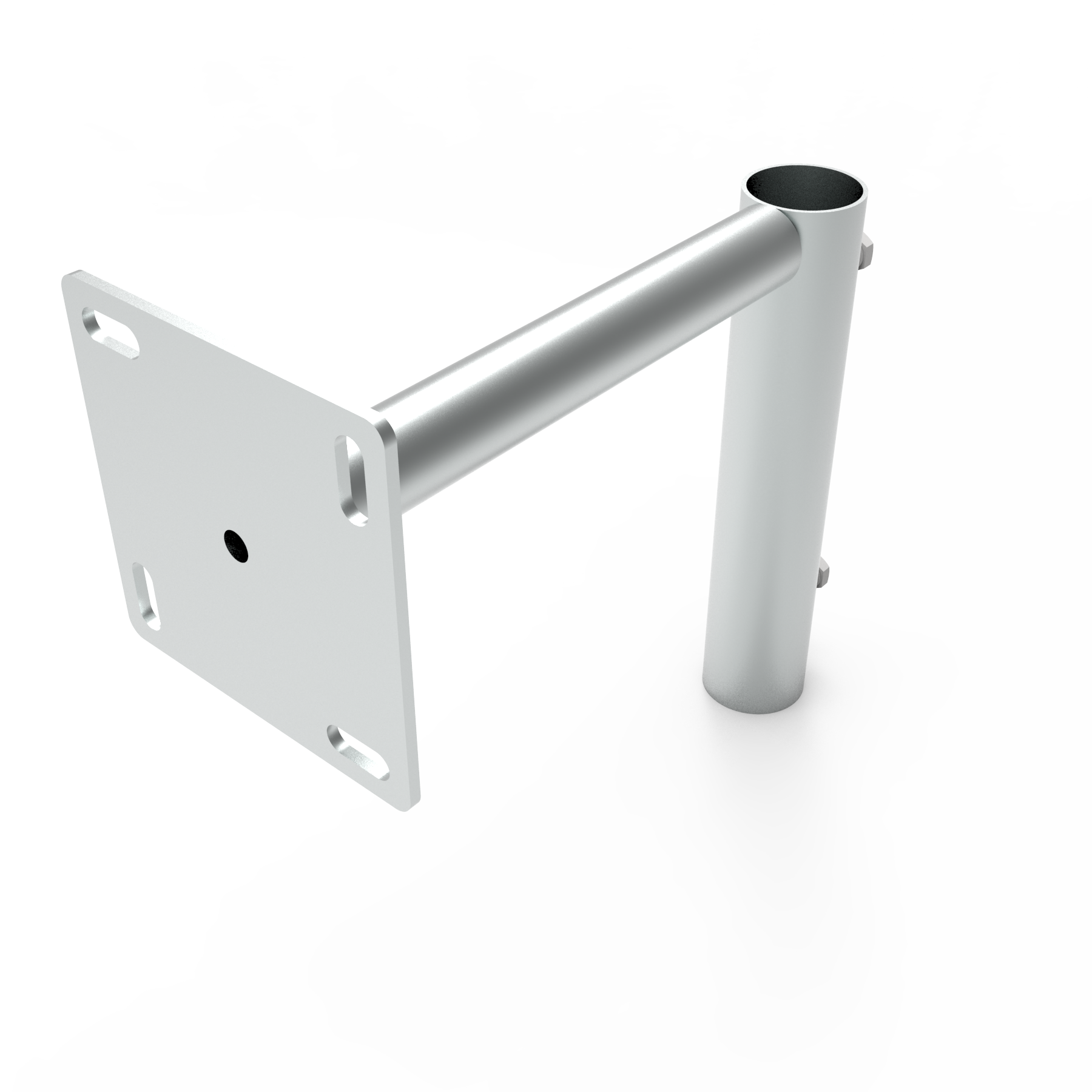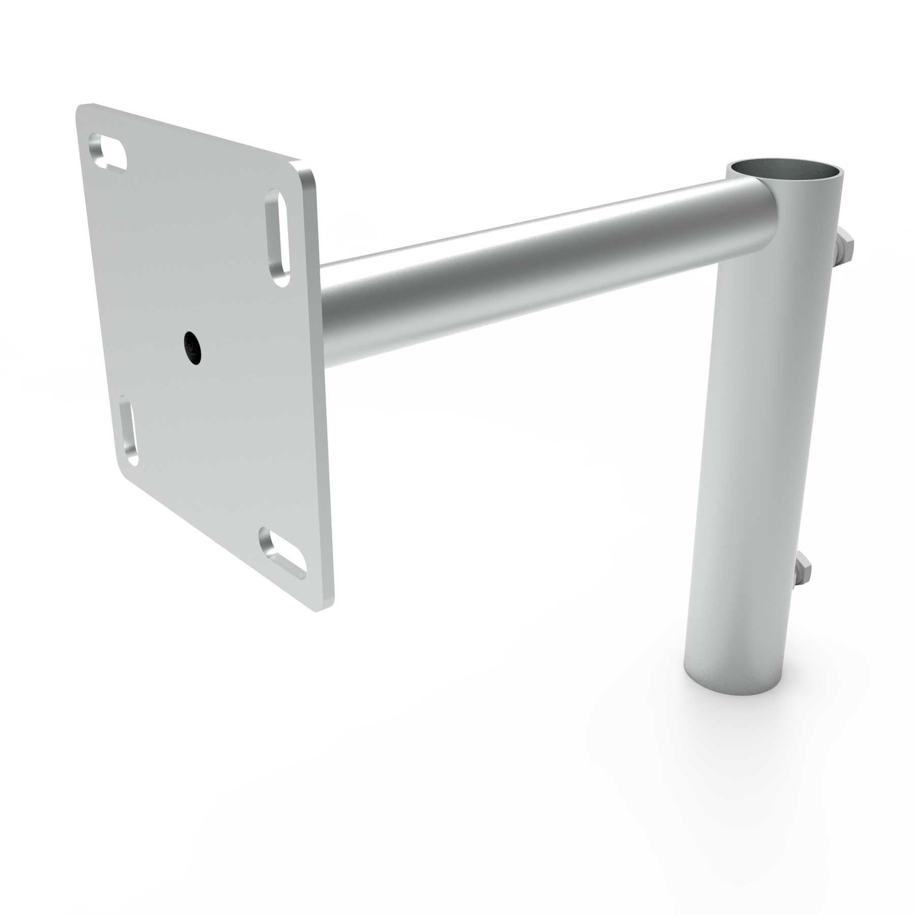 Suporte fixo para parede fabricado em aço galvanizado a fogo, indicado para fixação de antenas omnidirecionais e direcionais.